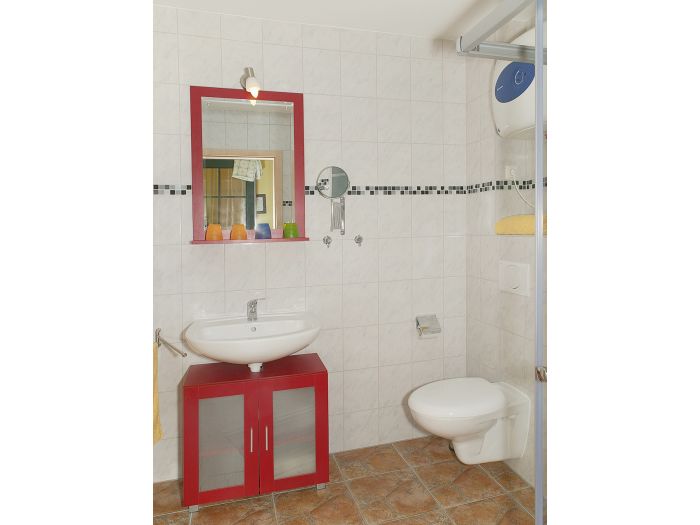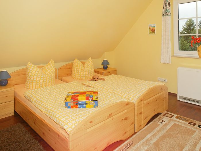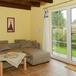 Die Haushälften beinhalten das Wohnzimmer mit Flatscreen TV, Kaminofen sowie integrierter, komplett ausgestatteter Küche incl. Geschirrspüler und Cerankochfeld, die 2 Schlafzimmer (eines mit Doppelbett, eines mit 2 Einzelbetten), das Duschbad, das Gäste – WC und den Hauswirtschaftsraum. Eine Terrasse ist jeweils vorgelagert, der PKW-Stellplatz befindet sich direkt am Haus. Bettwäsche und Handtücher sind vorhanden und im Preis enthalten.